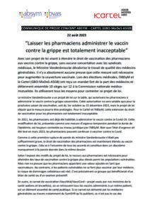 Un communiqué de presse Cartel/Absym pour faire bloc contre la vaccination par les pharmaciens